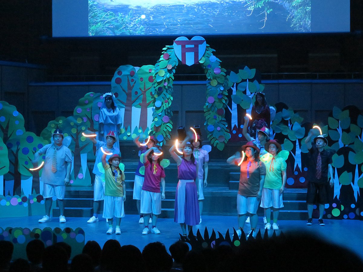 森で神社を探す女の子たち ✲手話パフォーマンスきいろぐみ ファミリー手話ミュージカル2018「白い森 黒い森」 ✲2018/8/25(2回目公演) https://t.co/XHYWacbnck #きいろぐみ #もっちーず
