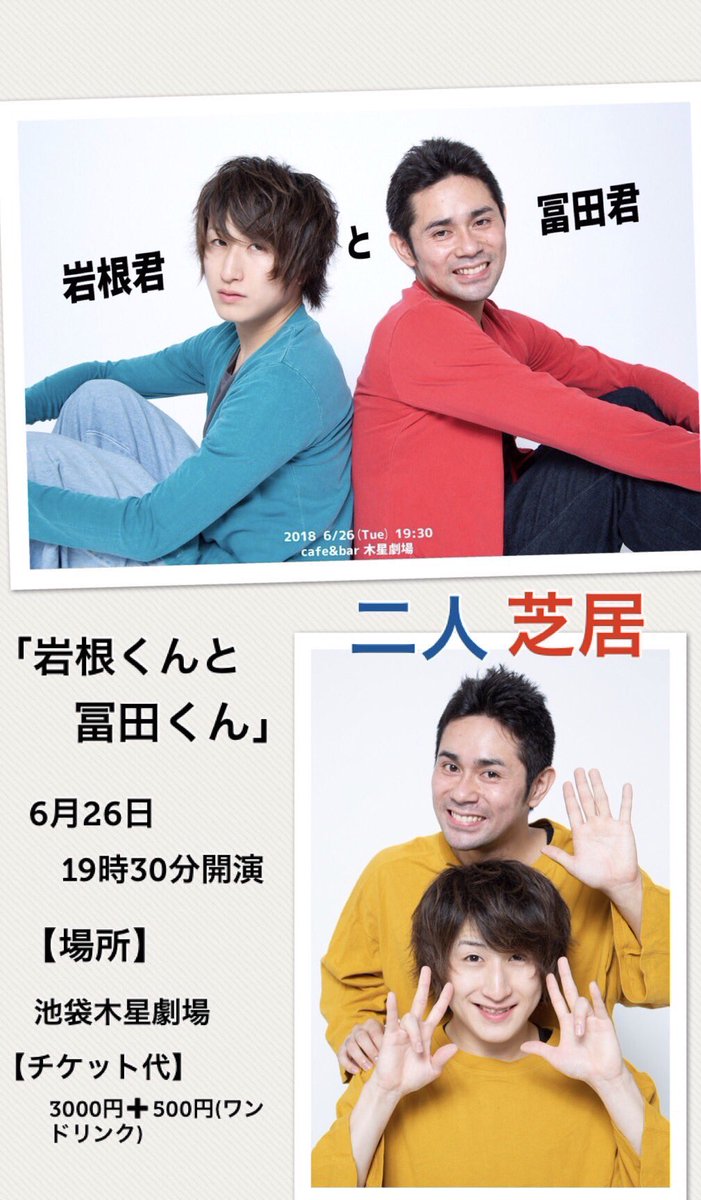 いよいよ 明日🎈 『岩根くんと冨田くん』 木星劇場にて✨ 🌈受付&開場→19時 🌈開演→19時半 当日券のお問い合わせなどは こちらの公式アカウントDMまで✨ https://t.co/3POKVCFhdR #岩根くんと冨田くん
