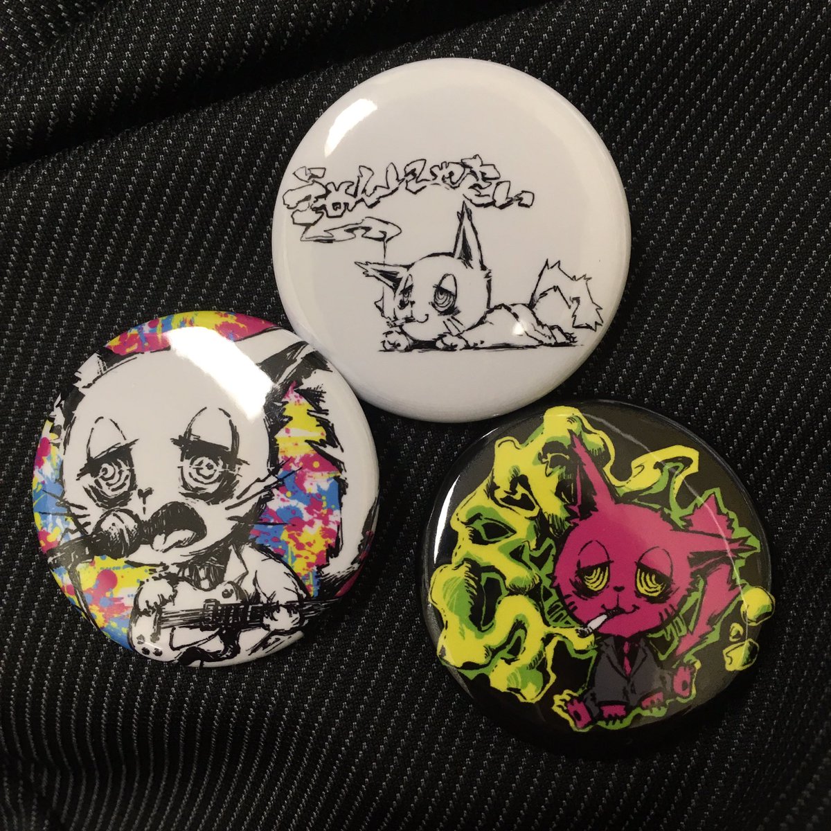 【物販① オリジナル缶バッジ】 土曜夜麻痺のマスコットキャラクター「ミック」の缶バッジです。 劇団ロゴマークより1種類、過去公演の告知用に描き下ろしたイラストから特に大きな反響をいただいた2種類の、合計3種類をご用意しました。 https://t.co/tCv3tkaLG8