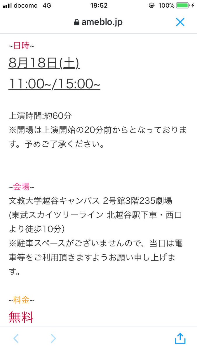 諸事情によりスクショで申し訳ありませんが告知。文教大学劇団NoN-SpoiLさんに脚本『ひかりのまち 』を提供させて頂きました。お時間や興味のある方はぜひ! https://t.co/nPF7WiJUAQ #ノンスポ新人公演 #ノンスポ #演劇 #脚本