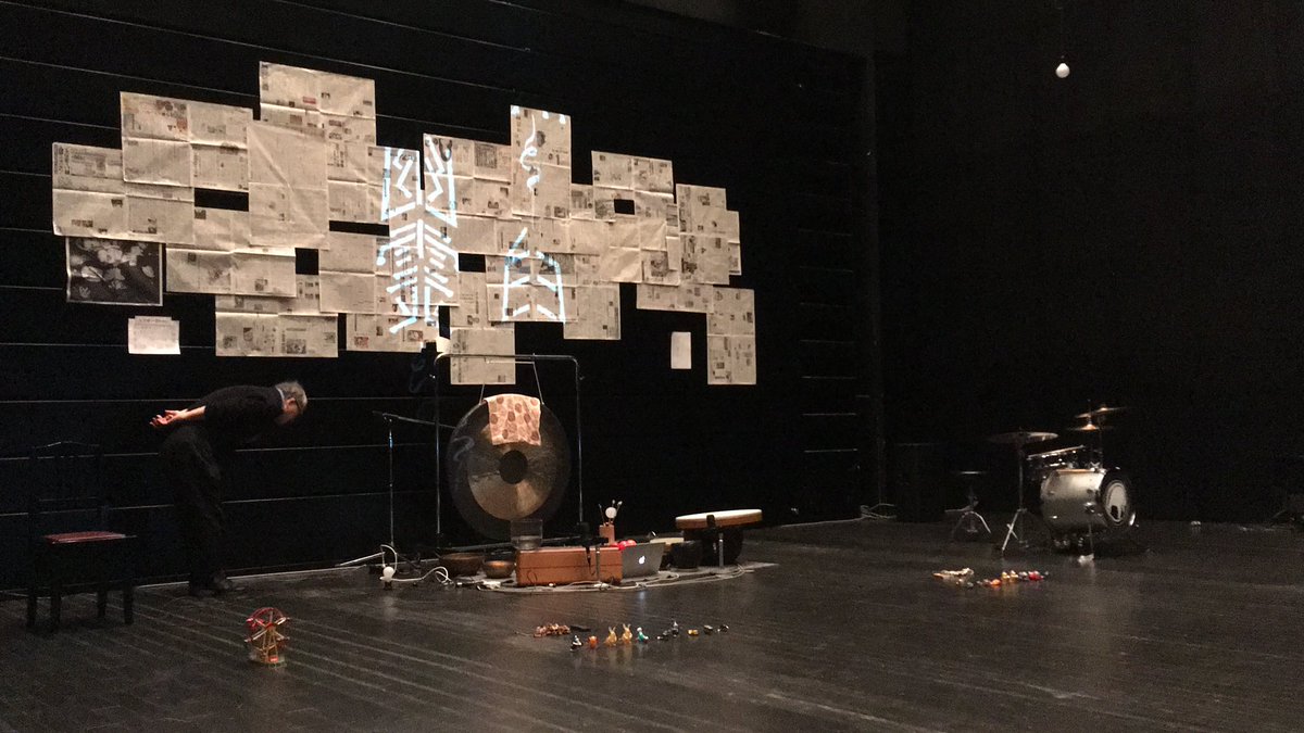バストリオ+松本一哉「黒と白と幽霊たち」2018.11.10-11、金沢21世紀美術館シアター21、金沢2カ所目?場所によってマジに違う影響になる作品そうなので美術館ver.良さそうだなと。松本一哉の演奏はアナログ楽器からなのにな… https://t.co/rTJsyoIEpG