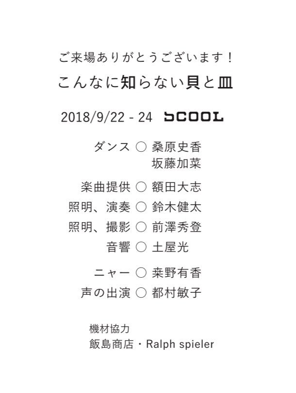 27. 【本日から開催!!】9/22土 - 9/24月 『こんなに知らない貝と皿』 ダンス:桑原史香、坂藤加菜 9/22土 20:00 9/23日 14:00/20:00 9/24月・祝 14:00 前売2500円 当日3000円 楽曲… https://t.co/nFTM4U8iez