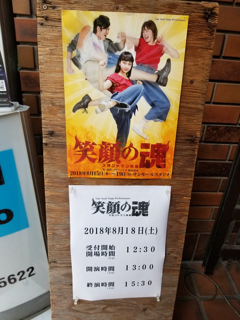 <推し事日記> 笑顔の魂 スタントマン物語 @サンモールスタジオ マチネ 13時~15時45分 https://t.co/kkDu0ahZce #笑顔の魂 #サンモールスタジオ #藤咲みのり