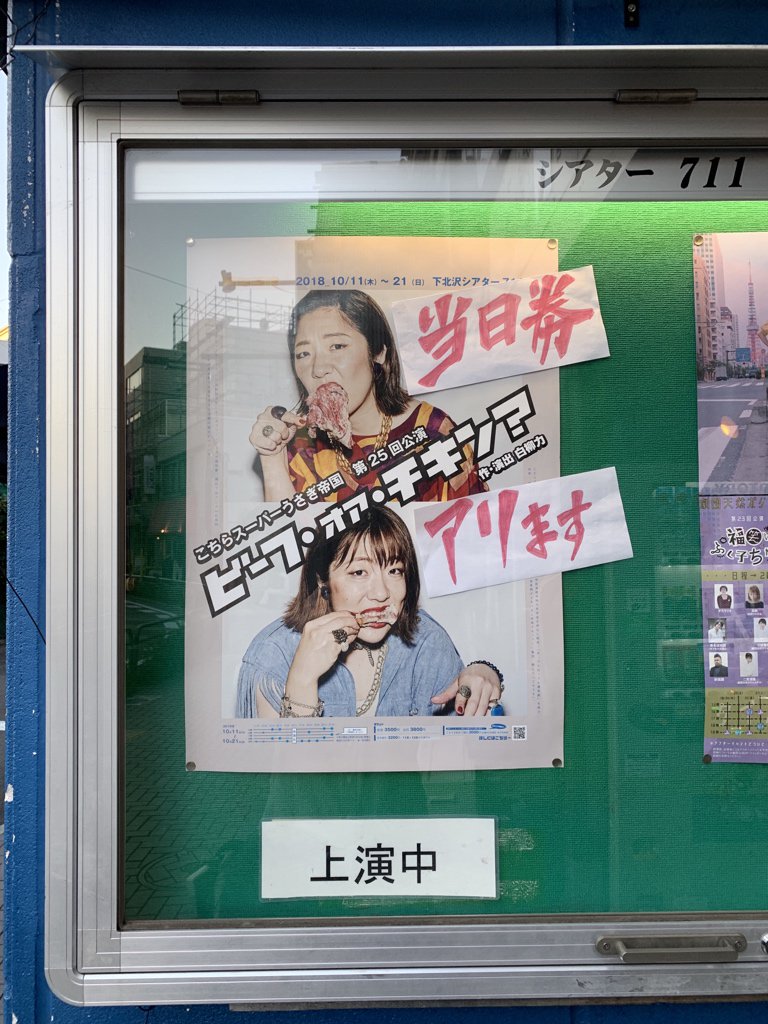 こちらスーパーうさぎ帝国 「ビーフ・オア・チキン?」 残すは17時公演のみ! 下北沢シアター711にて。 当日券もあります! よろしくお願いいたします! お昼の公演に若旦那さんが来てくれました!! いつもありがとうございます!… https://t.co/cZwyeaaGBy