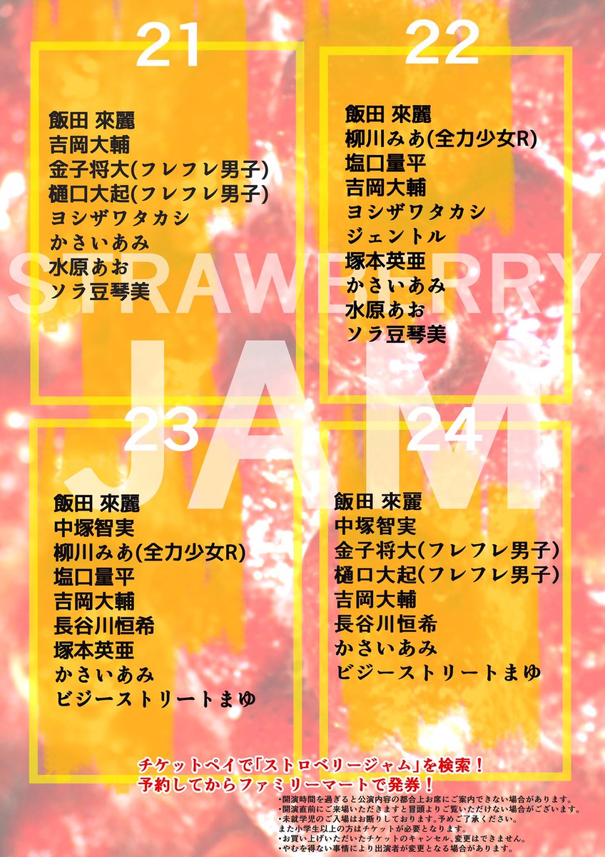 こんにちは。今日はコントライブ『ストロベリージャム』の最終日です。16時〜の回と19時〜の回、どちらも当日券ございますので是非! 当日券は15時からと18時から、会場前にて発売です! https://t.co/WfawaemWlv