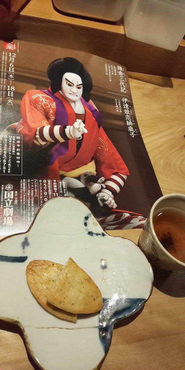 小休止。煎餅(ばかうけ)と焙じ茶の組み合わせ、最高だ。12月文楽公演も始まります。いよいよ年末だと感じるし、ちょっと気持ちを盛り上げて、駆け抜けて、燃焼して正月を迎えたい。煎餅食べてる場合ではないか・・・正月はゴロゴロするぞー! https://t.co/LFSG04a4eZ
