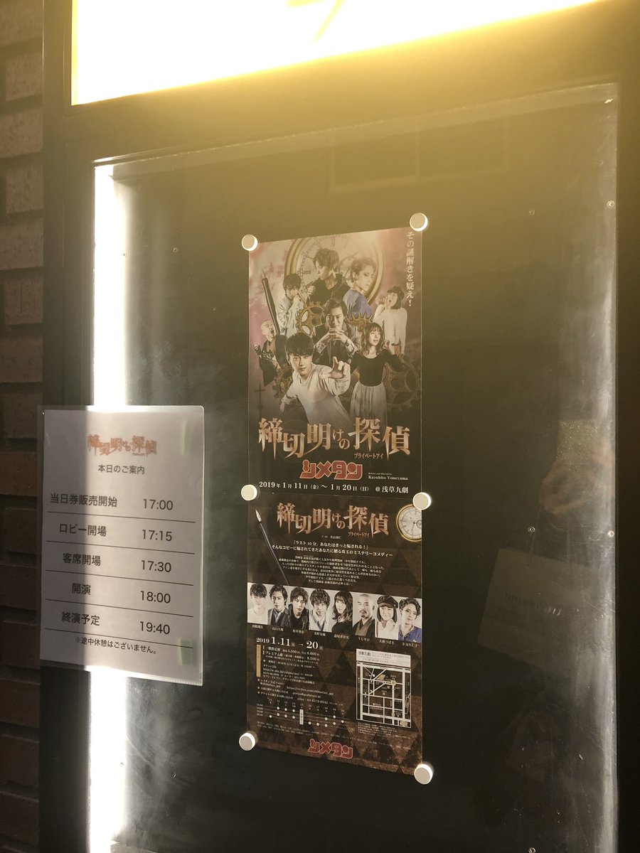 こちらはなんて言うかこう、ニヤニヤが止まらない約2時間って感じですね。「シメタン〜締切明けの探偵(プライベートアイ)〜」。浅草九劇で20日まで(15日は休演日)。ホチキスの米山さんが盛り込んでます。詰め込んでます。溢れかえってます… https://t.co/4XFEPX0IOH