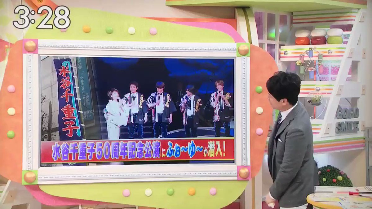 本日のゴゴスマは『 水谷千重子50周年記念公演にふぉ〜ゆ〜が潜入!』 千恵子先生とふぉ〜ゆ〜のコラボはゴゴスマさんからのサプライズだったのね! https://t.co/N83hsD00Ok