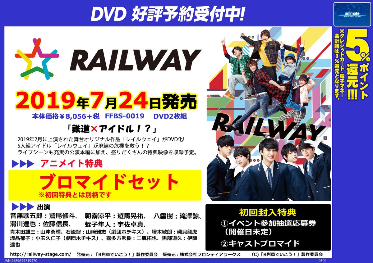 アニメイトオンラインで予約開始! DVD 舞台 レイルウェイ https://t.co/XGDV7CKvdA 「鉄道×アイドル!?」オリジナル舞台作品がDVD化! アニメイト特典:ブロマイドセット