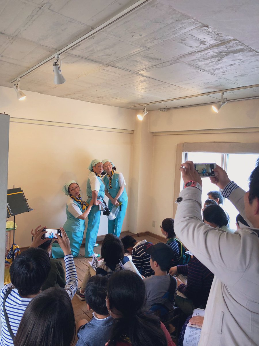 福岡博多編、千穐楽開場しましたー! 今日はちびっ子率が高い高い! お掃除おばちゃん達はさらに豪快に飛ばしてるよ〜笑 宮川サキのキャラクター大図鑑2019 https://t.co/vZVl1nxfe2