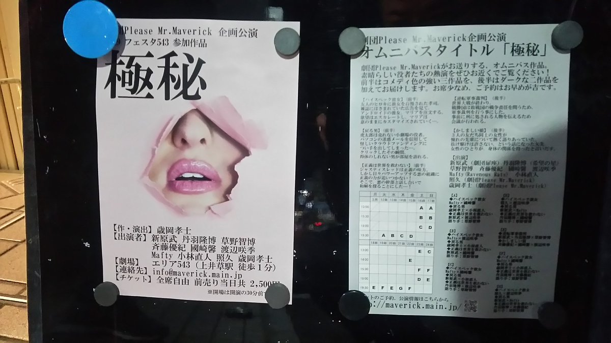 上井草で劇団Please Mr.Maverickさんの舞台「極秘」を観てきました!今回はオムニバス形式なので話が三本。 どの話も笑えるミステリアスコメディーで演者の感情表現が起伏に富んでて魅了されました。 来週は別の話での公演もあ… https://t.co/T3WUmEsj9a