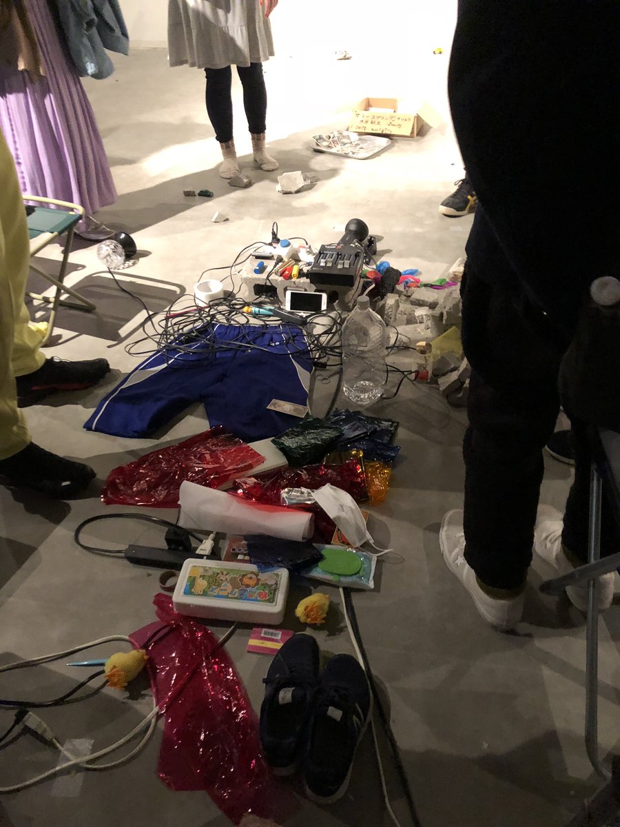 (承前) サマースプリング at SCOOL 出演者とオペレーター達が、展開された装置や美術を用いて心象を起こしていく様な進行で、観る側の状況によって見え方や感じる物が異なる様なリトマス試験紙的な作品。音楽も押さえを効かせつつも… https://t.co/WBmc1qEcDm