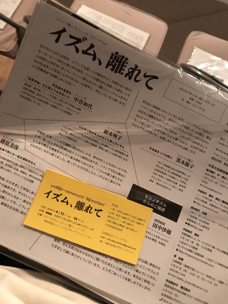 「イズム、離れて」(ユニット美人xソノノチ“ビジノチズム”)@ KAIKA。いい“創作”コメディだった。こういうの好き。