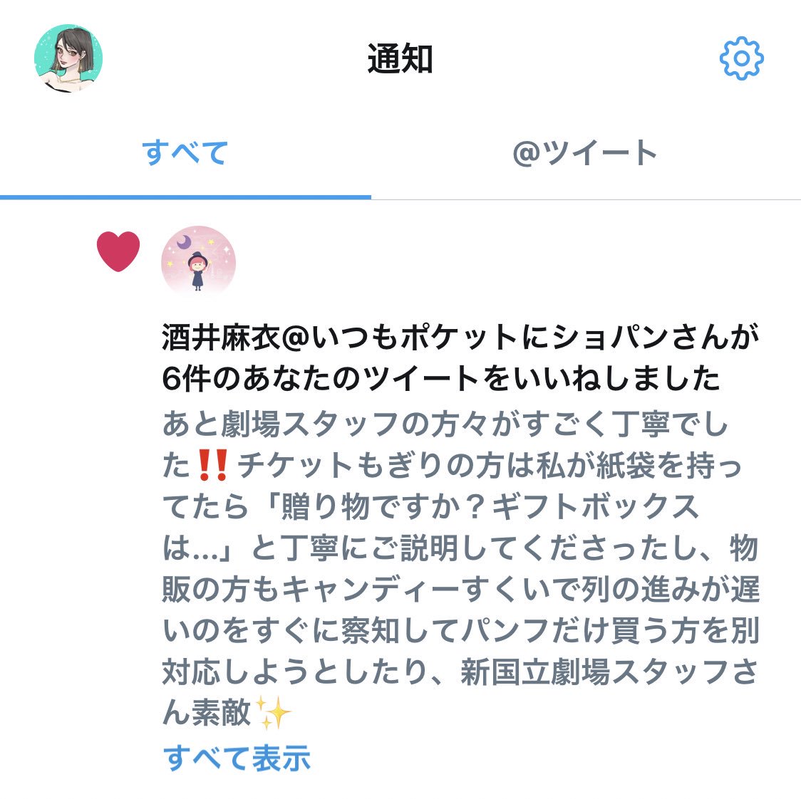 いつもポケットにショパンの演出の酒井さんにツイートいいねして頂いた…! 嬉しい…!
