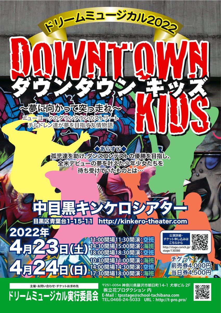 5. 【出演情報】  が   に出演致します。 4月23日(土)・24日(日) 中目黒キンケロシアター お問合せは、 tkts @ sannopro . co . jp まで 応援の程、よろしくお願い致します。 #風間暖希 #ドリームミュージカル2022 #ダウンタウンキッズ