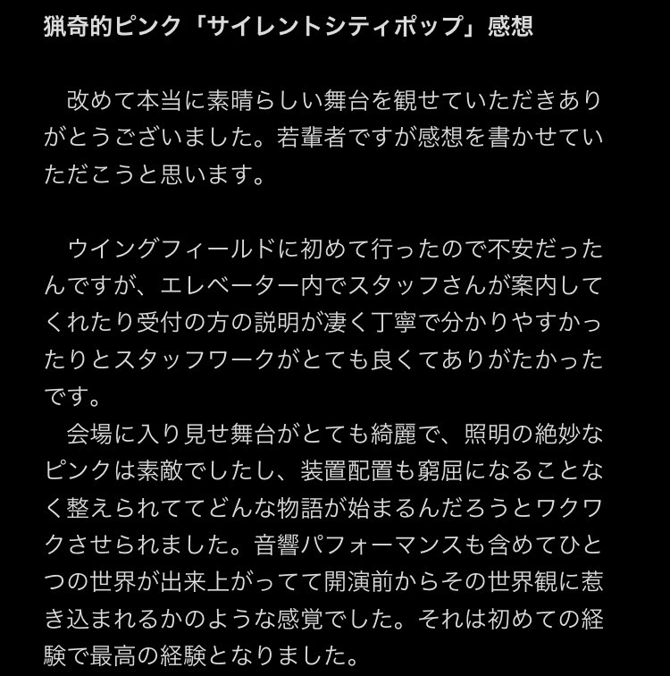 13. 猟奇的ピンク解散公演「サイレントシティポップ」観劇してきました! とても、不思議な一時でした、、 でも、とても良い作品でした! https://t.co/8sKyr0Iycn #猟奇的ピンク