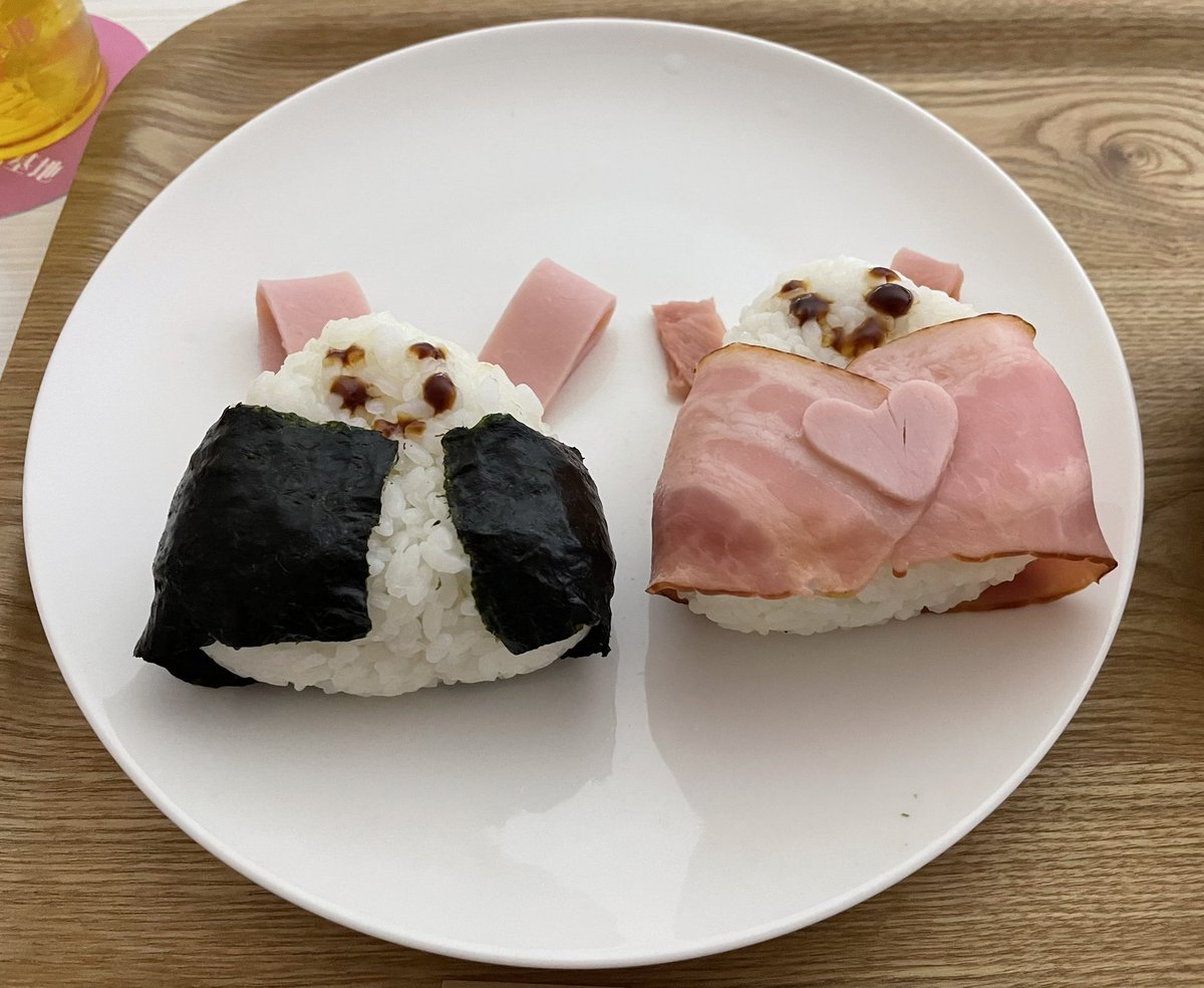 兎亭🐇にいてました😊 おにぎり🍙と豚汁🍲美味しかった😋 おにぎり🍙になぎちゃんがお顔描いてくれたよ🙆♂️ 今日も自力ではりこちゃん💓ブロマイド引けなかった😅シャンパンの推しコンプリートブロマイドがあって助かりました🙏 https://t.co/wuWirMkBxi