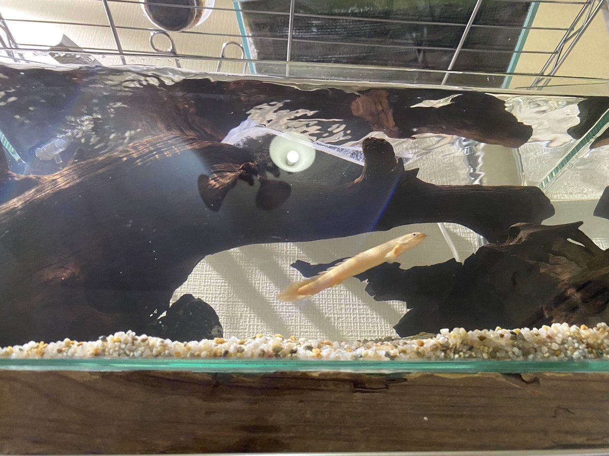 うちの水槽の苔取りエースブッシープレコが動き鈍くなってきた、ついに寿命かな😢 よく10年間水槽の苔を食べてくれました、余生はのんびり過ごしておくれ。