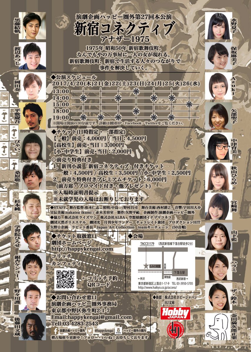 演劇企画ハッピー圏外第27回公演 「新宿コネクティブ アナザー1975」 無事に終演いたしました。 ご観劇くださった皆様、 応援してくださった皆様、 新宿コネクティブに関わった皆様全員、 本当にホントにありがとうございました!!!