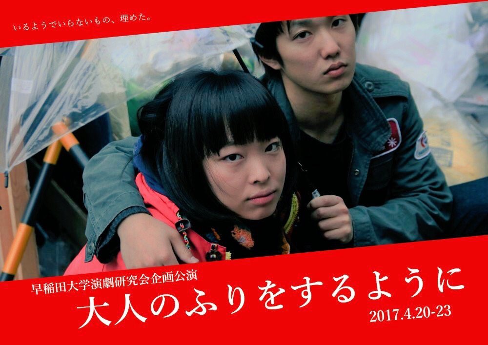 早稲田大学演劇研究会 「大人のふりをするように」 4/20に観に行きました! 長い2人芝居はたぶん初?で、2人芝居の幅というか視点が広がった。2人芝居書くのもう一回挑戦してみたいな。 役者が2人で、話に出てくる人が出てこなくてよ… https://t.co/Jaxby2is5b