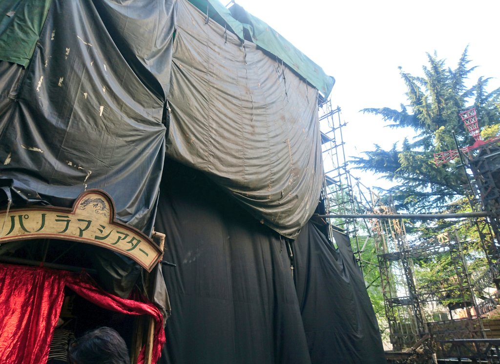 19. 水族館劇場の公演は昨日で終了し、撤収作業が始まった花園神社。5月からは唐組の「ビンローの封印」。https://t.co/dYyP5Vjcw0