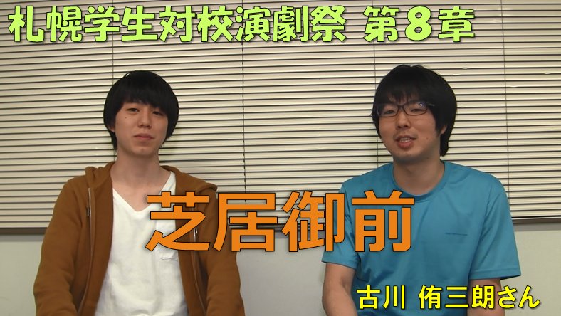 札幌学生対校演劇祭 ゲスト:古川侑三朗さん 芝居御前 今回のテーマは『食べる』 いよいよ今週末です! 動画はコチラ→https://t.co/P947JlszTE https://t.co/dSQUFnoAjK #対校祭