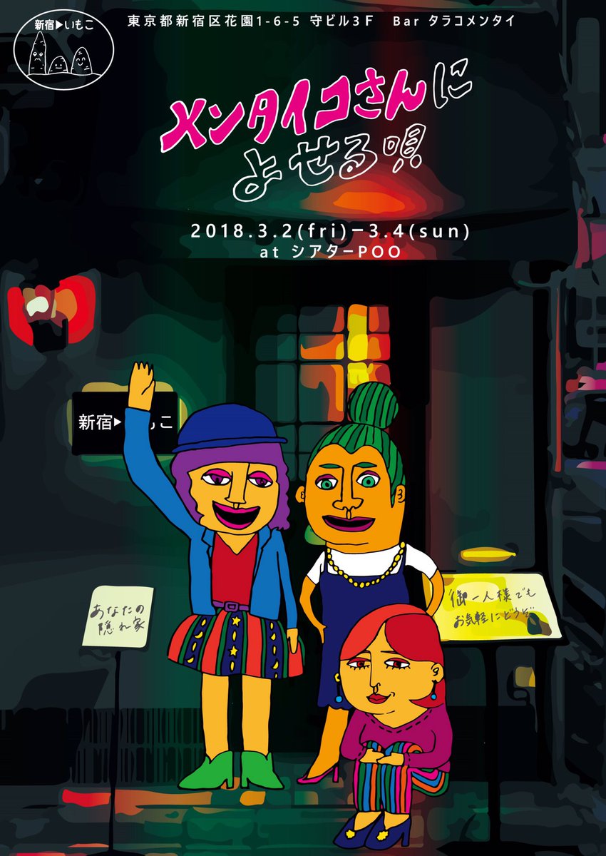 『メンタイコさんによせる唄』キャビア:小林菜々、タラコ:鬼丸三千代、数子:秋田満衣。3人それぞれ似ていたり、でもやっぱり全然違ったり。一緒に居るのが不思議なような、でもちょっと分かる気もする「新宿▶︎いもこ」でした。 https://t.co/8vTfoNhno3