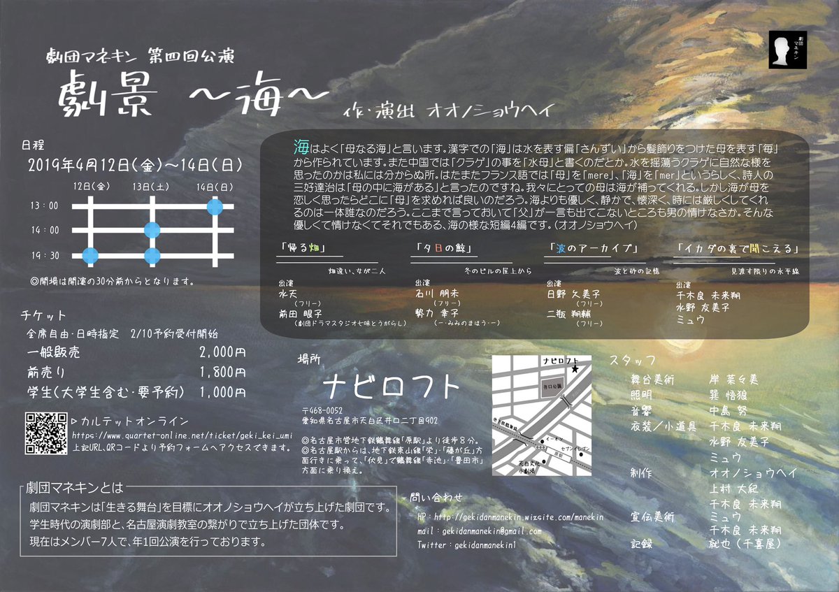 【ゆうこりんのナビロフト⭐なびび】 【今週のお芝居】 劇団マネキン 第四回公演 劇景〜海〜 作・演出 オオノショウヘイ https://t.co/bvQkTvWGVn https://t.co/Aq1umsXVhG