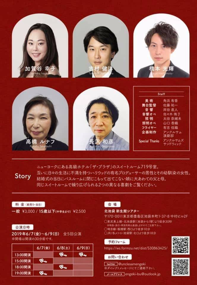 2019/6/7 アンクルサム演劇部Vol.1 『プラザ・スイート』 作:ニール・サイモン 演出:木内希 北池袋 新生館シアター