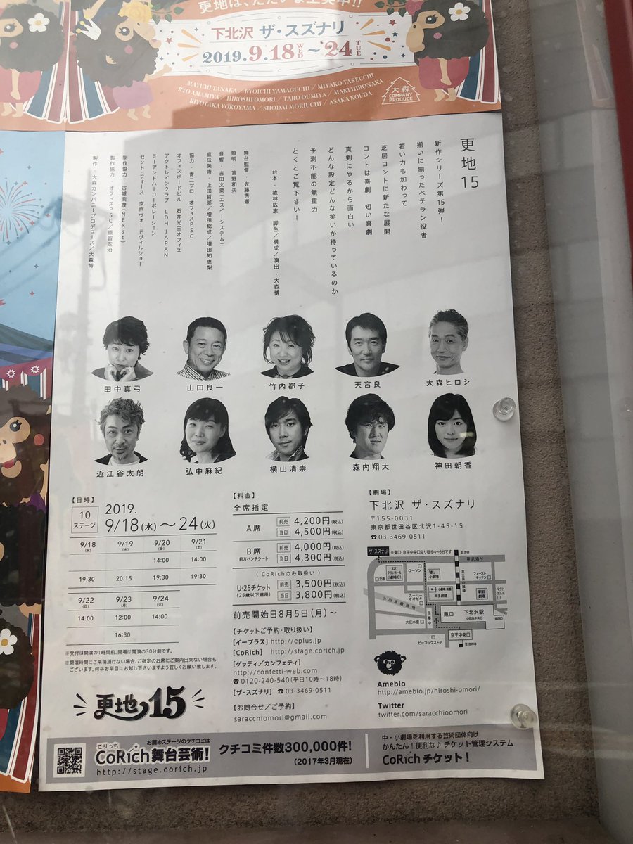 ザ・スズナリで、 大森カンパニーの更地15 横山さん出演の舞台ようやく観れました。笑ったー。 本日、千秋楽とのこと。 お疲れ様でした。 また次の舞台も、楽しみです! 場所: ザ・スズナリ https://t.co/7mI90jTDcl