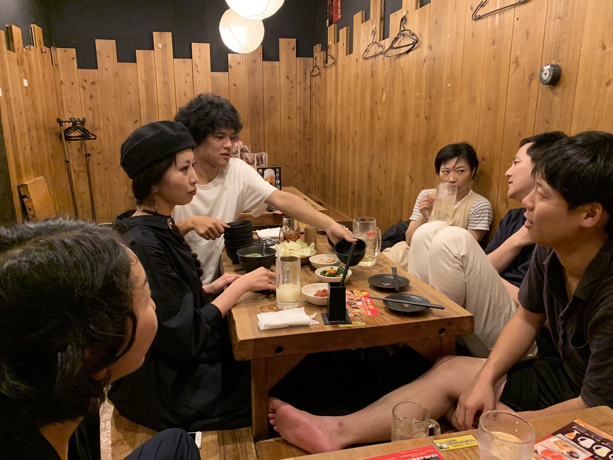 ニットキャップシアター「チェーホフも鳥の名前」二次会も終了しました。 死屍累々です。 「夏草や兵どもが夢の跡」 阪急電車は天王山の辺りを走行中。 https://t.co/PBSGOVMk7T