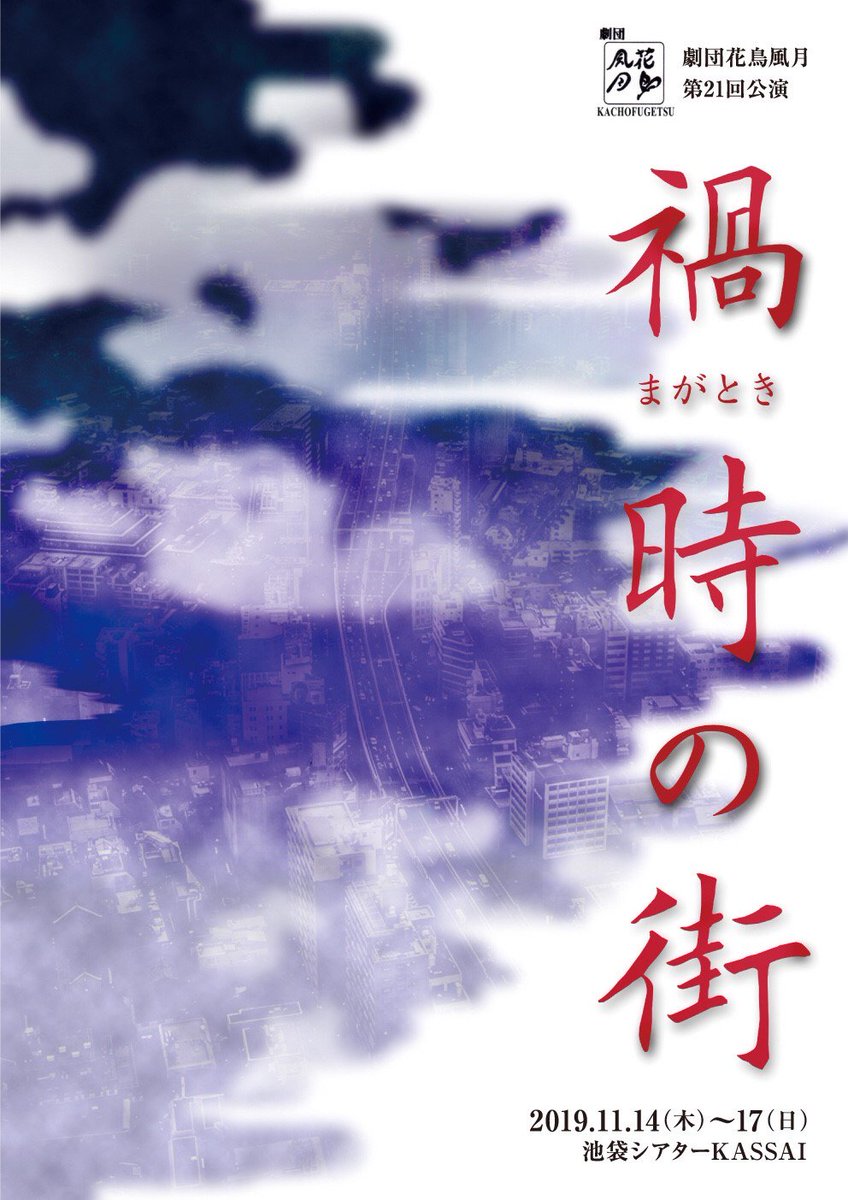 劇団花鳥風月 第21回公演 【禍時の街(まがときのまち)】 ●日時● 2019年11月14日(木)~17日(日) 15(金)14:00/19:30 16(土)14:00/19:00 17(日)15:00 @シアターKASSAI