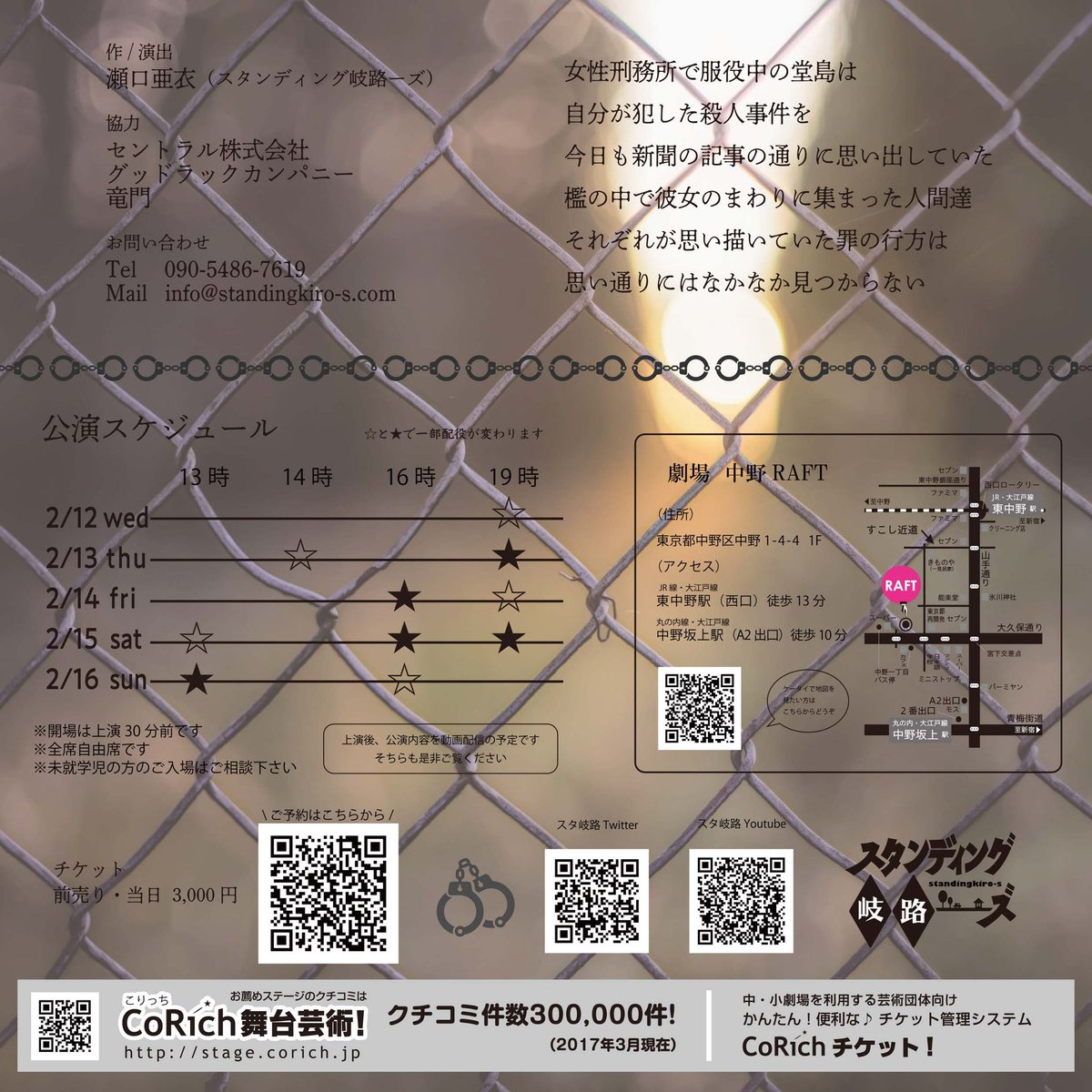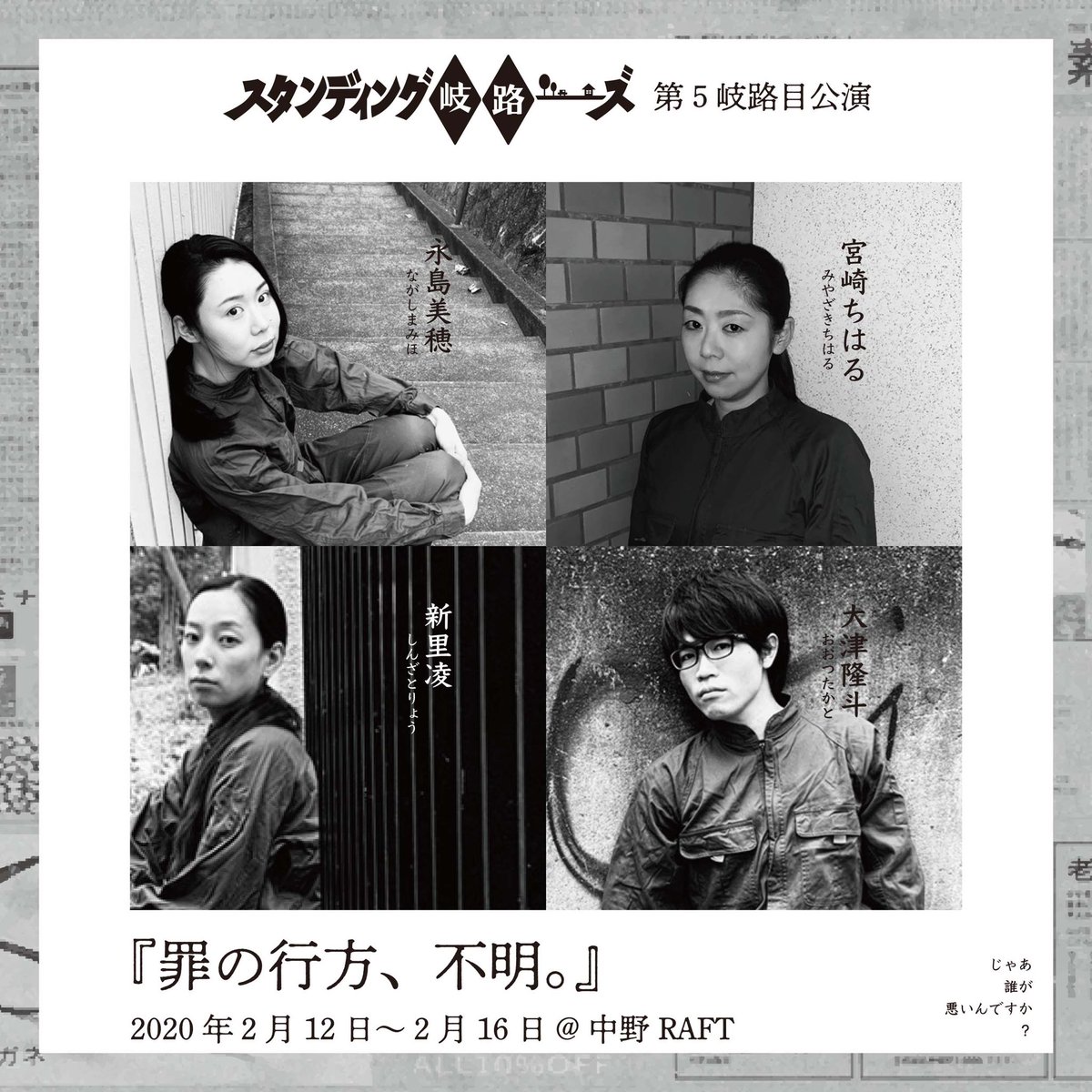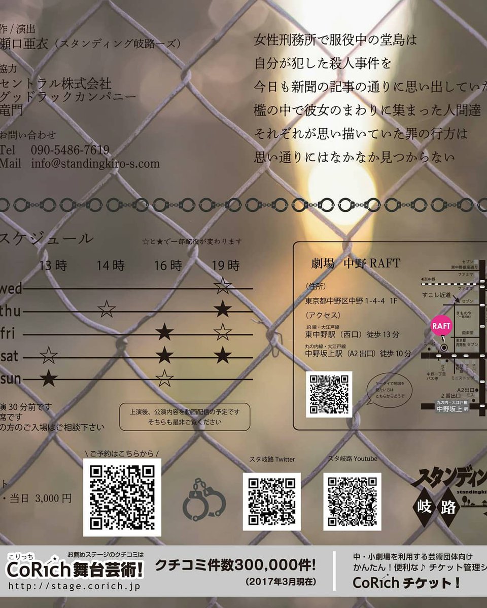 【今日のRAFT】 スタンディング岐路−ズ 第5岐路目公演 『罪の行方、不明。』本日楽日。 作・演出 瀬口亜衣(スタンディング岐路−ズ) 16日(日) 13時(お席のご用意出来るそうです) 16時(満席) クスッと、ぞ… https://t.co/wGQI4tS7LO