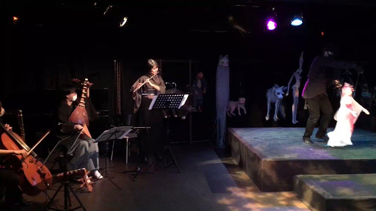 15. セッションヨシヤ、リハ中。Cole Porter の名曲「Don’t Fence me in」をフルート、チェロ、薩摩琵琶で。この曲でどんな人形が踊るのか?お席あります!直接会場へどうぞ!… https://t.co/2K4I83glsI