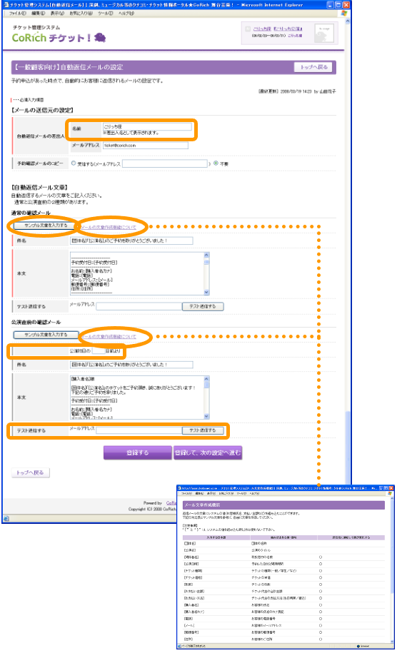 お客様に送るメールの送信元を設定します。 - ■自動返信メール文章
