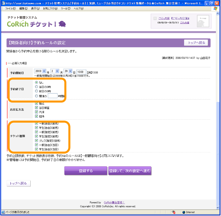 チケット予約ページの終了のタイミングを設定します - ■チケット種類