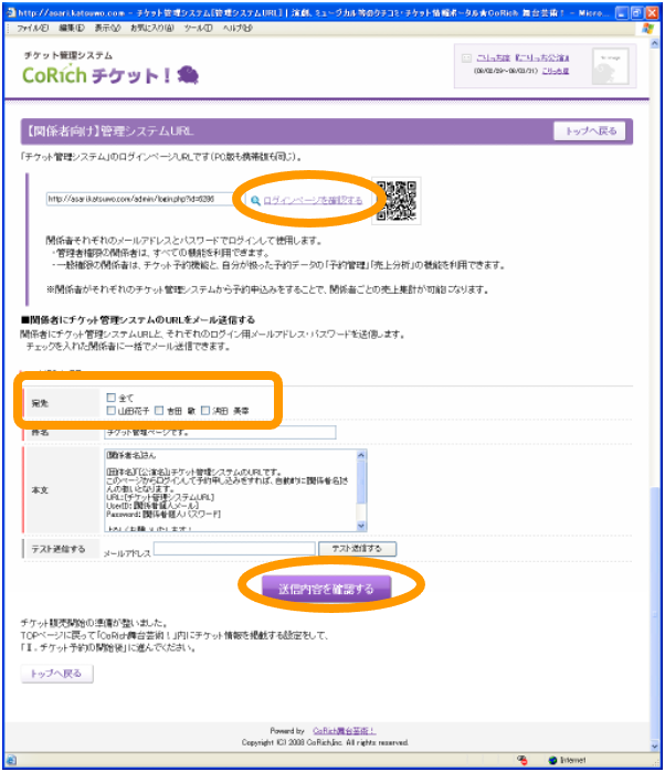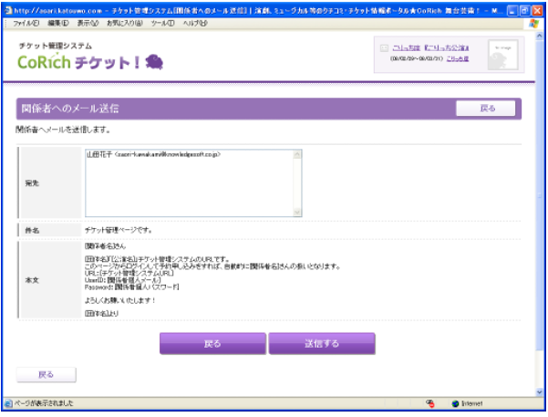 ②関係者各自にURLとID、パスワードをメール送信できます。