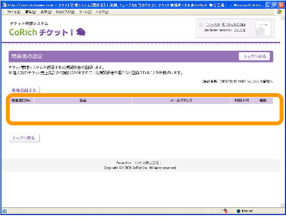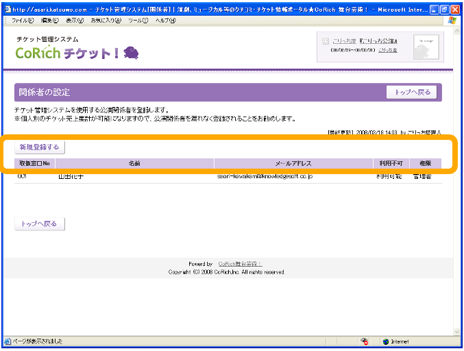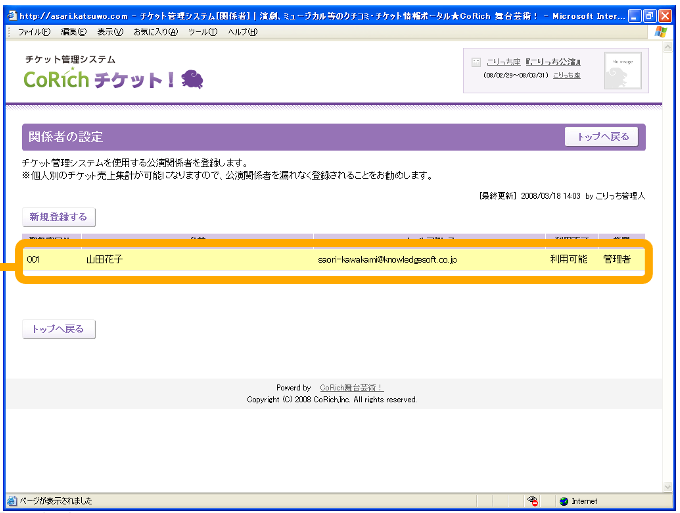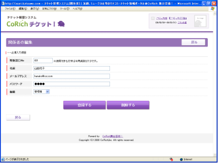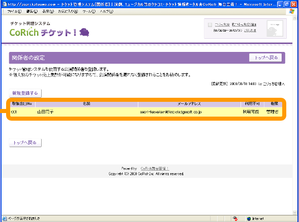 登録された公演関係者について、CoRichチケッ卜!の使用権限を設定します。