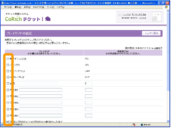該当のプレイガイドにチェックをつけます。