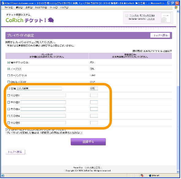 ■チケットを一般販売する場合に利用するプレイガイドを設定します。
