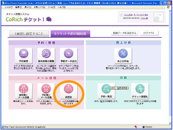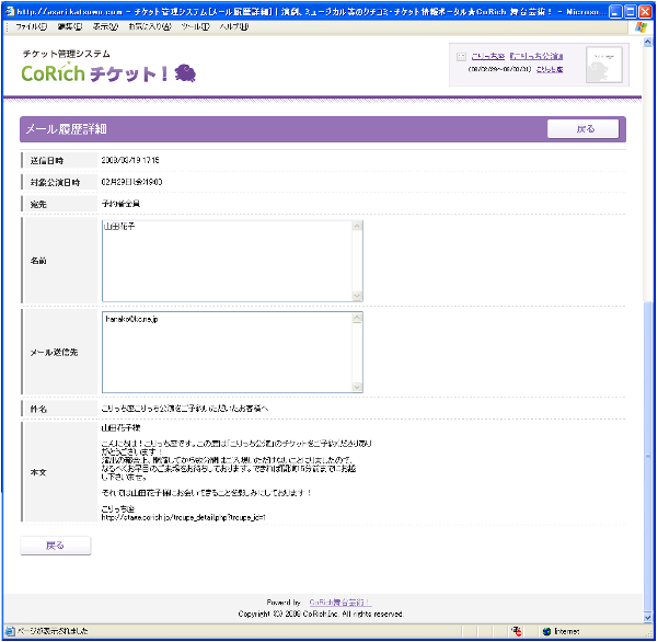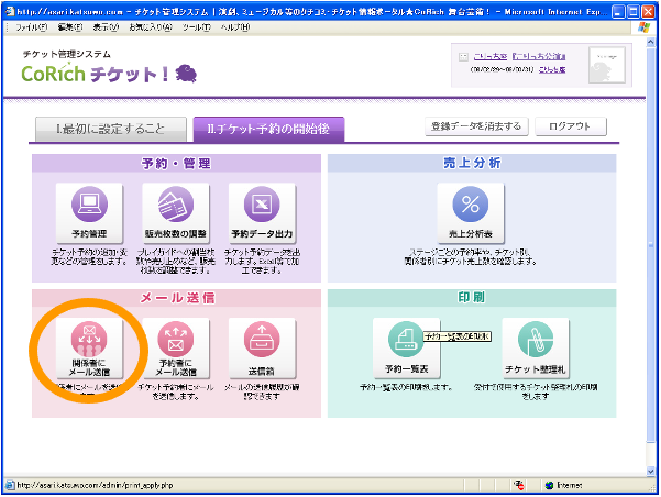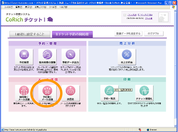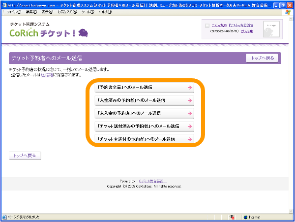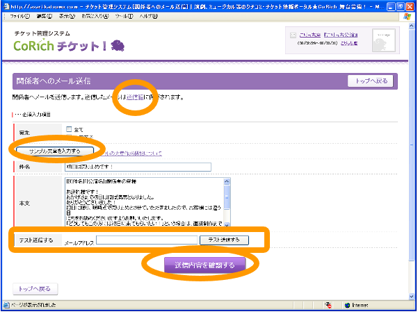 ※宛先は、予約データにメールアドレスの登録がある予約者の中から、「入金済み」「チケット送付済み」のチェック記録をもとに抽出されます。