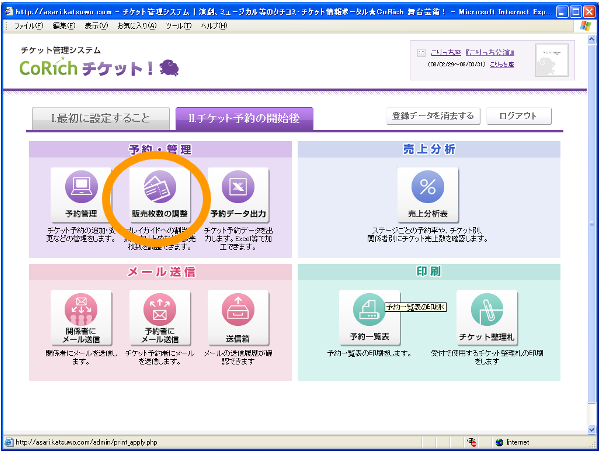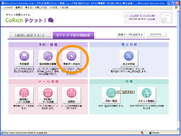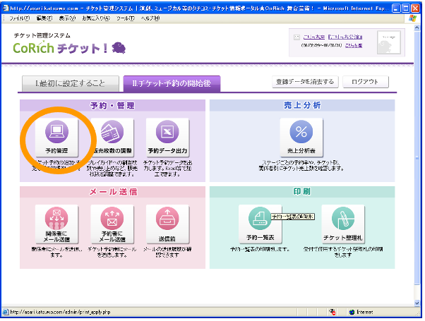 【Ⅱ.チケット予約の開始後】タブをクリックし、予約管理業務に進みます。
