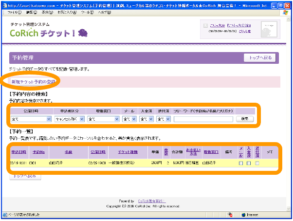- ■〔新規チケット予約の登録〕ボタン