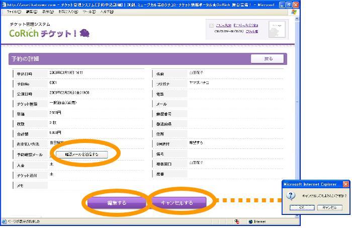 ③編集する場合、①で既存データをクリックすると【予約の詳細】画面が表示されます。