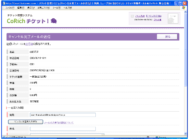 ⑥キャンセル完了メールを送信できます。