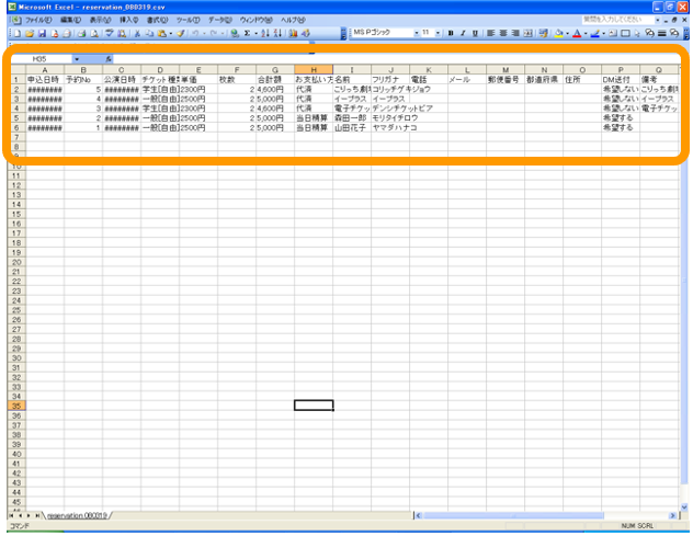 ■チケット予約データを出力します。